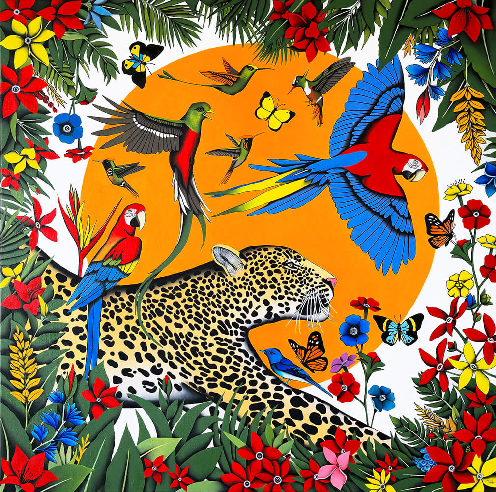 Cette peinture raconte l'histoire d'une âme qui s'élève en dépit des épreuves et des obstacles de la vie. Je garde donc le tigre comme figure métaphorique d’une âme qui s'avance vers sa destinée finale qui devient sa renaissance en tant qu'âme divine. Il marche vers la lumière.